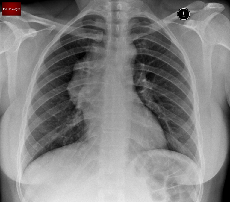 PA view of a chest X-Ray of a female in her 30s