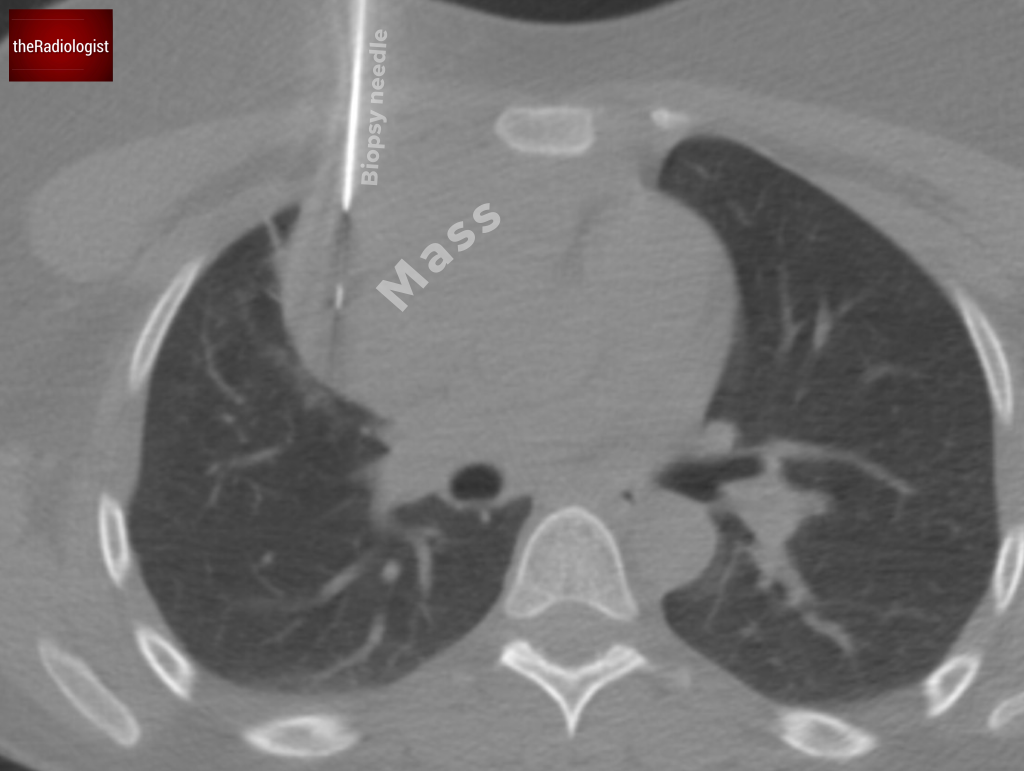 A single well defined anterior mediastinal lesion in a patient over the age of 50 is most likely to represent a thymoma and can commonly be resected without need for biopsy.
