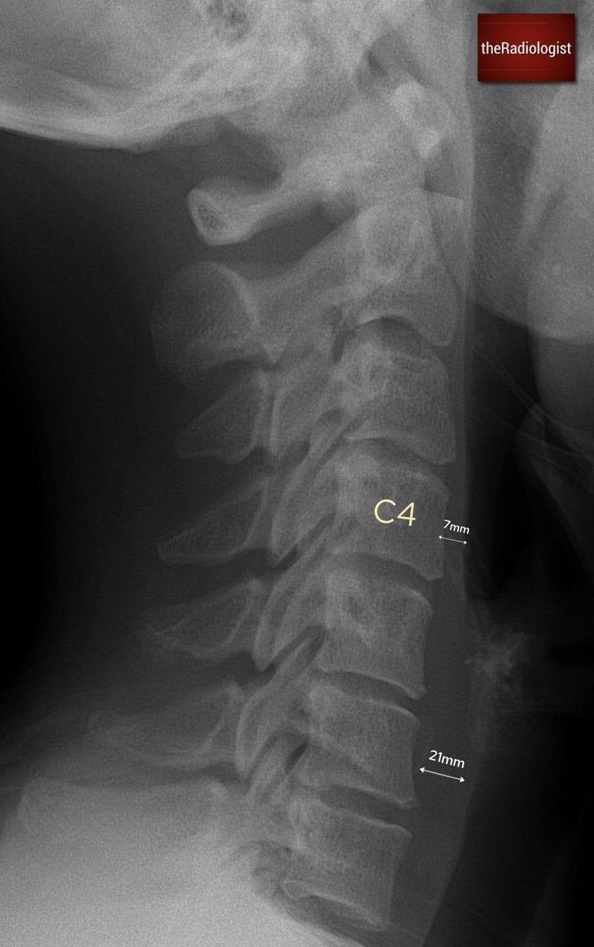 7 mm: the maximum prevertebral soft tissue thickness from C1–C4.
