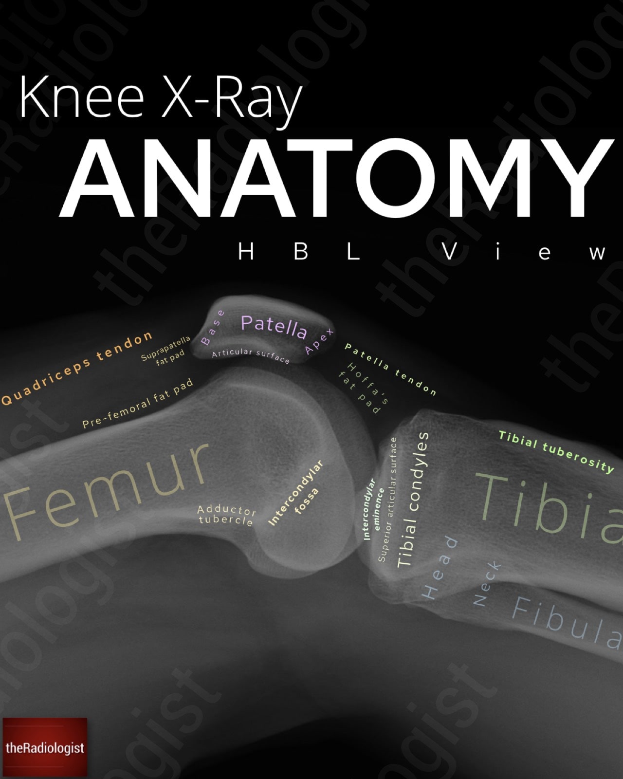 The HBL view is a key projection in assessing acute knee pain and trauma. It is performed with the patient supine, the knee ideally flexed to around 30 degrees although this can be limited by pain. This position allows better visualisation of the joint and is particularly valuable for detecting a lipohaemarthrosis, which strongly suggests an intra-articular fracture even if the fracture line itself is difficult to see.