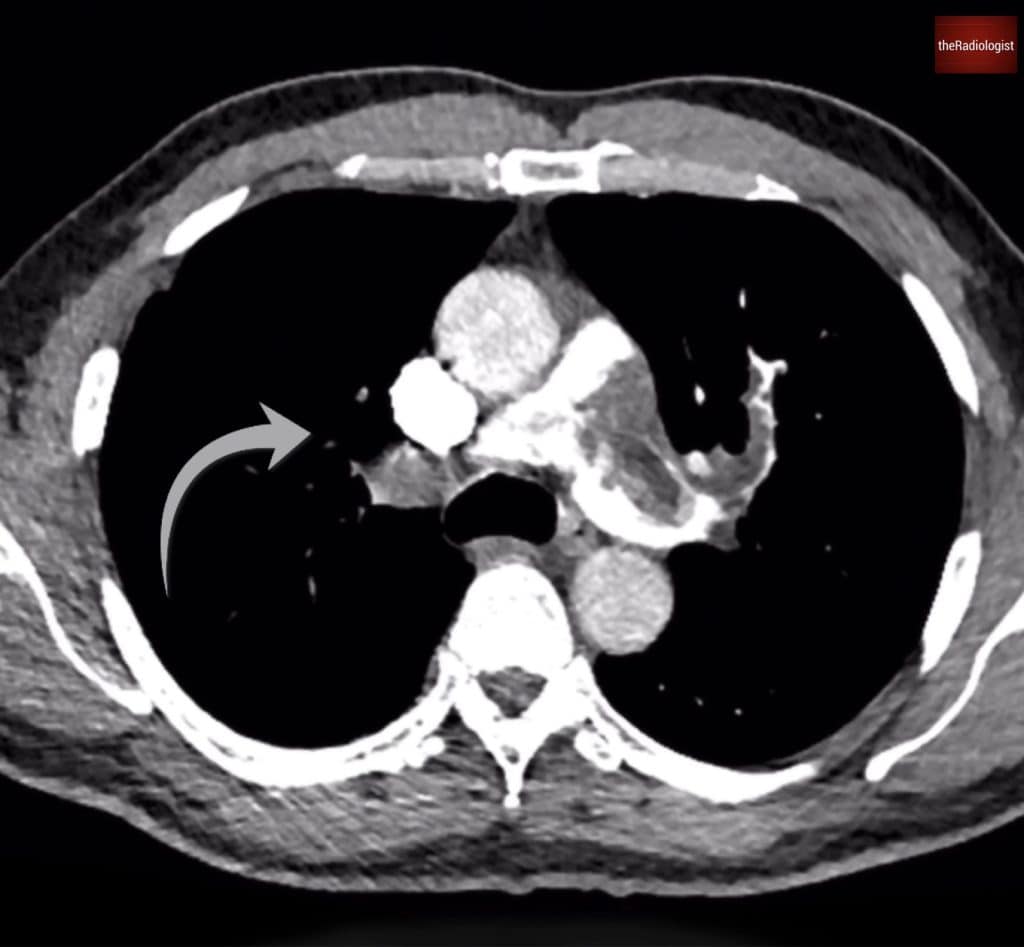 He eventually presented to the Emergency Department, where a CTPA was performed to investigate for pulmonary embolism.