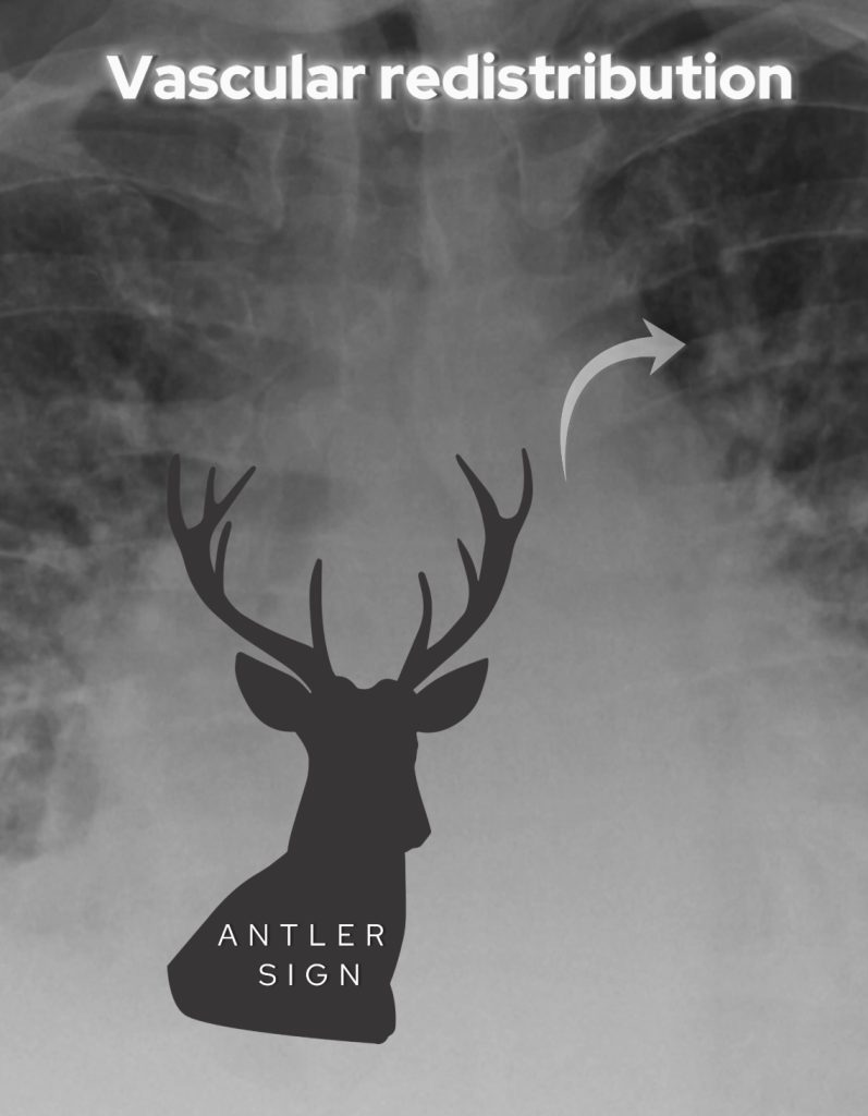 Look for dilated upper lobe veins – the ‘antler’ sign