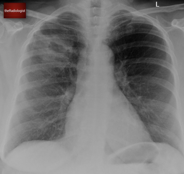 A woman in her 50s went to her GP with right-sided chest pain. Have a look at the initial chest X-Ray below: