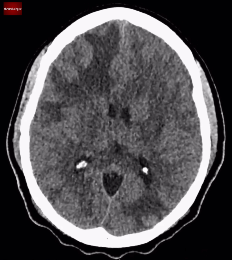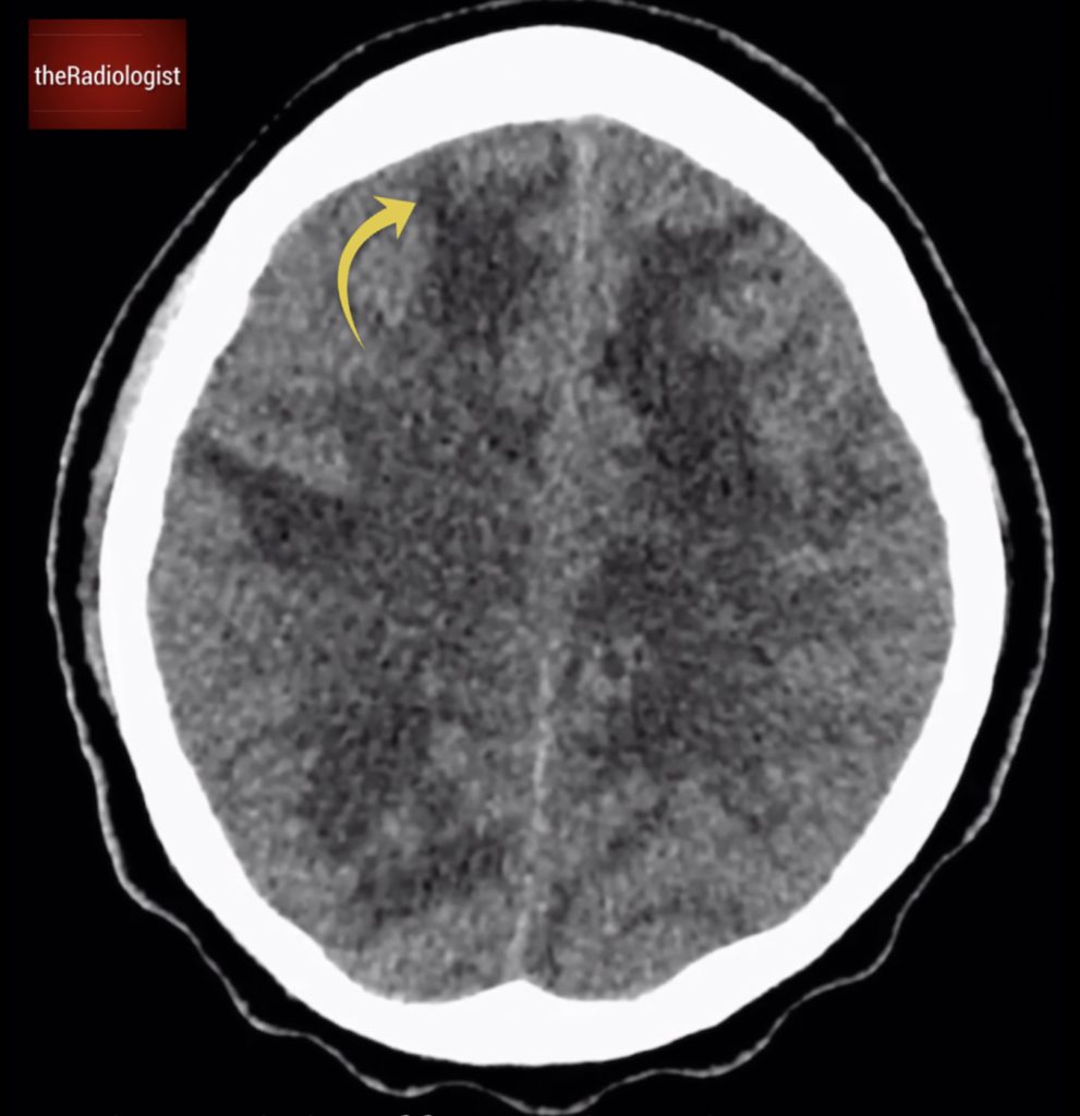 To better understand, let’s compare this with cytotoxic oedema, as seen in a stroke. Have a look at the picture below.