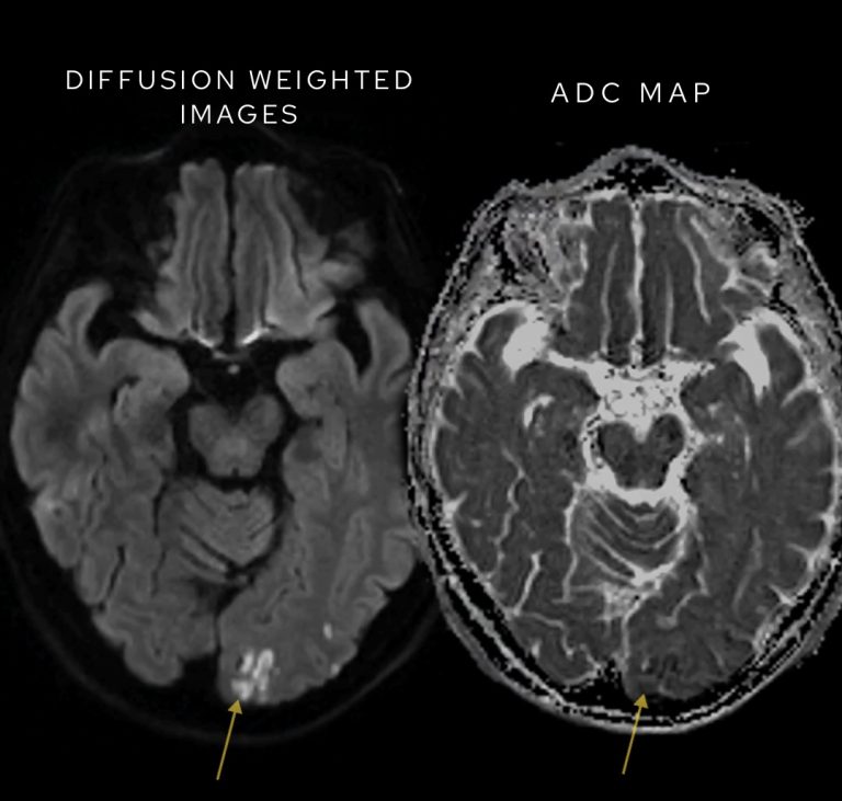• Bright spots on DWI without corresponding ADC reduction could simply reflect T2 shine-through, a phenomenon that mimics restricted diffusion but does not indicate pathology.